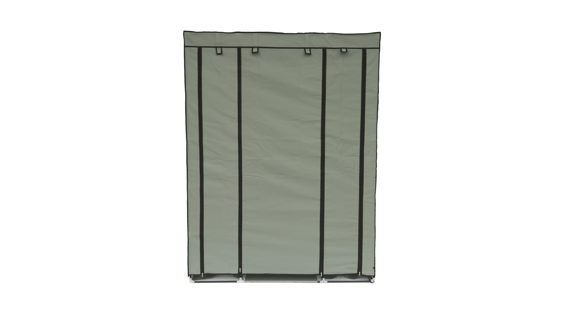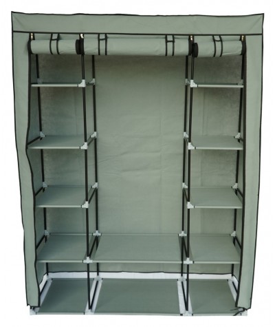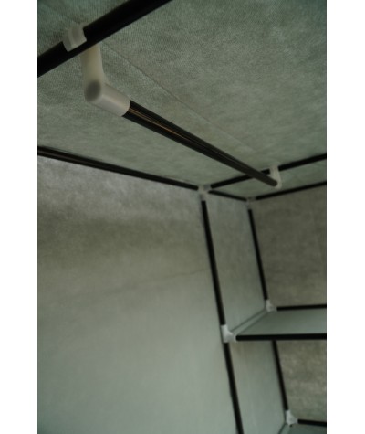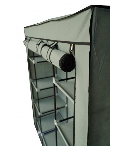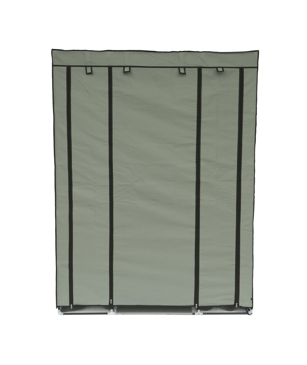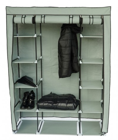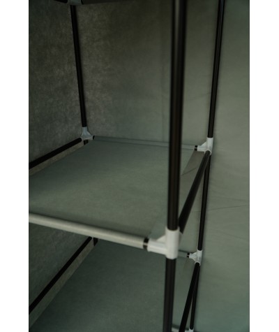 Tekstylna, trzydrzwiowa szafa na ubrania wykonana z metalowych ramek, które stanowią jej stelaż oraz wysokiej jakości materiałów, łatwych do utrzymania w czystości. Poszycie szafki wykonane jest z oddychającego i wodoodpornego materiału zasuwanego na zamki błyskawiczne. Wymiary szafy : 175 cm x 133 cm x 43 cm.