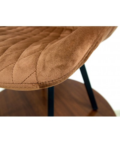 Połączenie modnego dziś materiału wraz z czarnymi nogami daje niesłychanie przyjemne odczucia wizualne. Designerska forma profilowanego siedziska wraz metalowymi nogami będzie z pewnością podkreśleniem niejednego wnętrza.