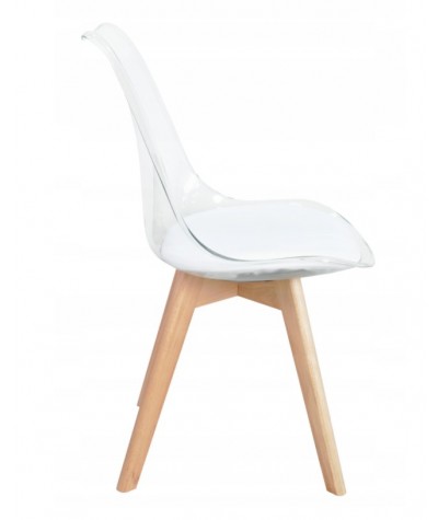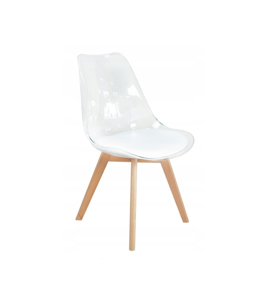 Wykonane z najwyższej jakości surowców. Siedzisko oraz oparcie wykonane jest z polipropylenu. W krześle zastosowano miękką wygodną poduchę z ekoskóry oraz nogi drewniane, które dają niepowtarzalny efekt w każdym mieszkaniu. Nogi maja zabezpieczenia przed uszkodzeniem paneli podłogowych, drewnianych podłóg, powierzchni lakierowanych i podłóg ceramicznych.