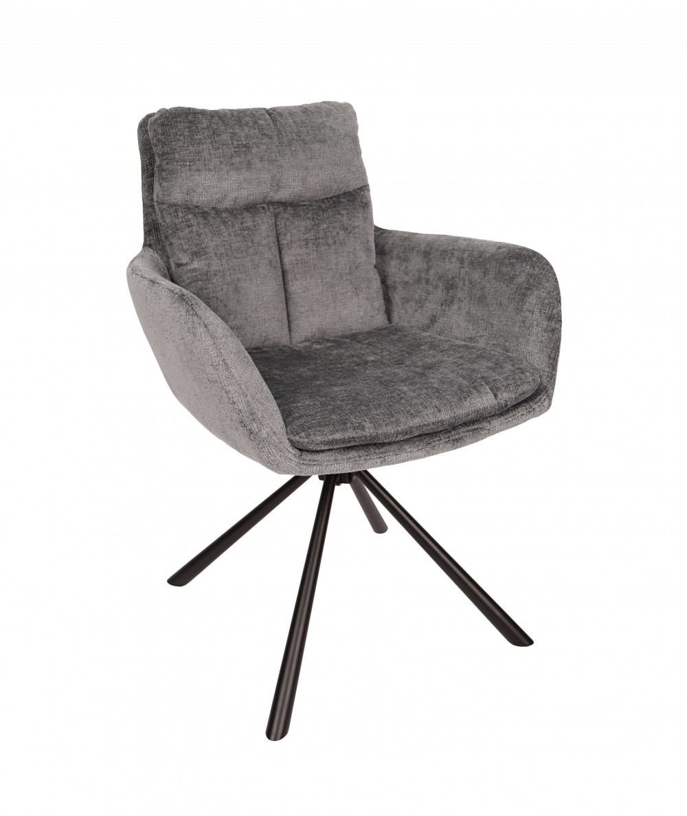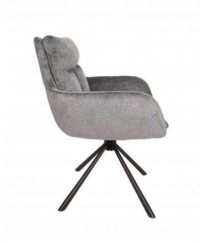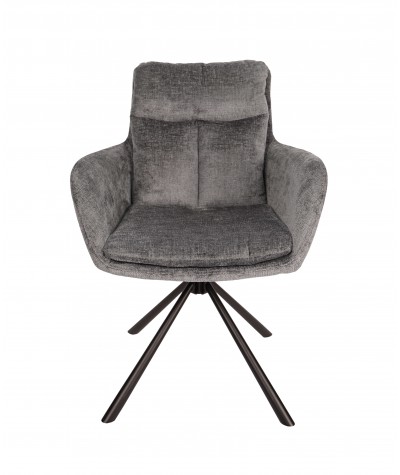 Krzesło tapicerowane w nowoczesnym stylu pasujące niemal do każdego pomieszczenia w domu. Krzesło osadzone zostało na solidnej, metalowej podstawie z dodatkową funkcją obrotu o 180'. Posiada mechanizm, dzięki któremu siedzisko wraca po wstaniu do pozycji frontowej. Wysoka jakość materiałów sprawia, że krzesło prezentuje się wspaniale. Tapicerowanie zapewnia komfort w codziennym użytkowaniu.