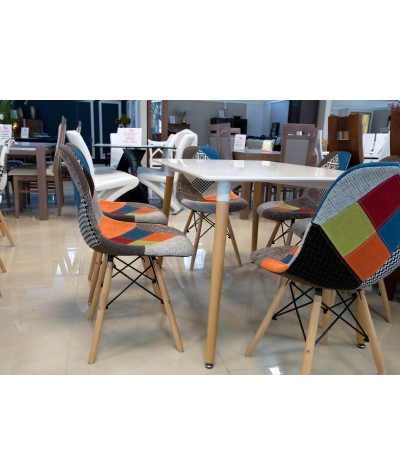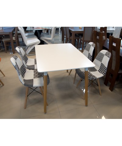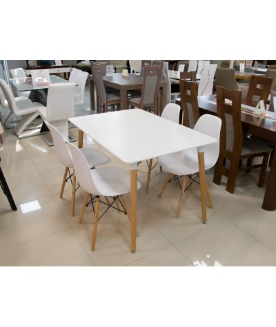 Połączenie niesamowicie kontrastujących ze sobą kolorów naturalnego drewna oraz popielu daje niesłychanie przyjemne odczucia wizualne. Designerski styl stołu w połączeniu białego blatu z nogami z naturalnego drewna będzie z pewnością podkreśleniem niejednego wnętrza.