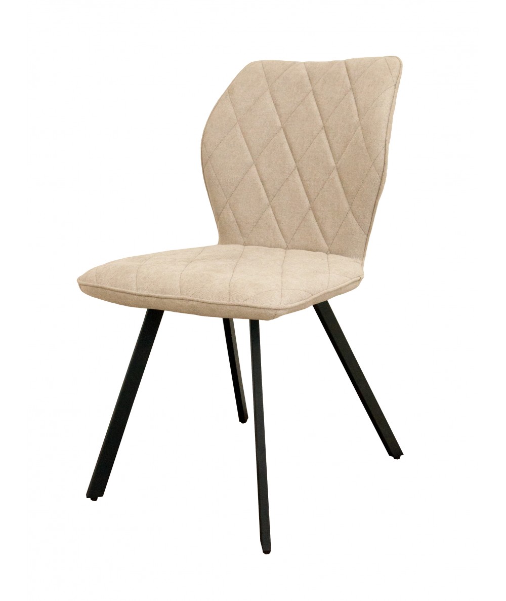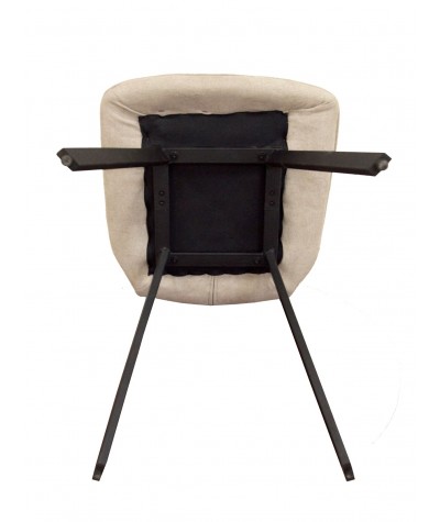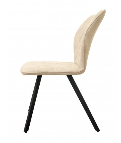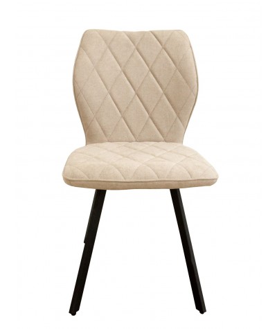 Nowoczesne krzesło posiada siedzisko i oparcie tapicerowane tkaniną w kolorze beżowym. Wytrzymała, najwyższej jakości tkanina jest łatwa do wyczyszczenia i odporna na przecieranie się. Krzesło osadzone jest na metalowym stelażu, który podkreśla jego elegancki charakter. Mebel przeznaczony jest do samodzielnego montażu.