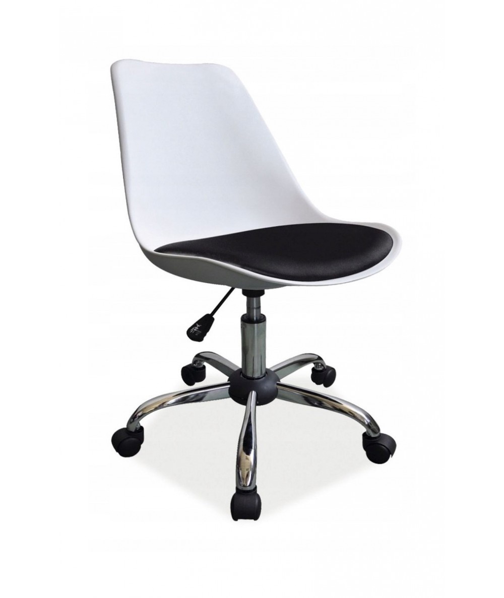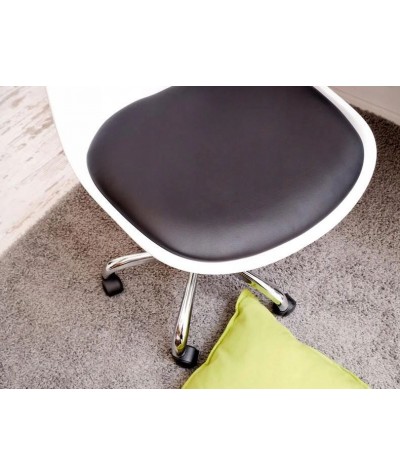 Wyrafinowane i gustowne, obrotowe krzesło MILANO o klasycznych biało-czarnych barwach. Siedzisko wykonane z bardzo dobrej jakości tworzywa sztucznego. Dodatkowo wyposażone zostało w bardzo miękki pad obszyty eko-skórą . Podstawa MILANO to bardzo solidna i stabilna metalowa podstawa z funkcją regulacji wysokości. Krzesło obrotowe jest bardzo funkcjonalne, a przy tym prezentuje nie nad wyraz atrakcyjnie, zachęcając do skorzystania z komfortu, jako zapewnia. Doskonale sprawdzi się na małej przestrzeni jak i w miejscach, które wymagają mobilności począwszy od biura jaki i w sypialni, czy domowym pokoju.