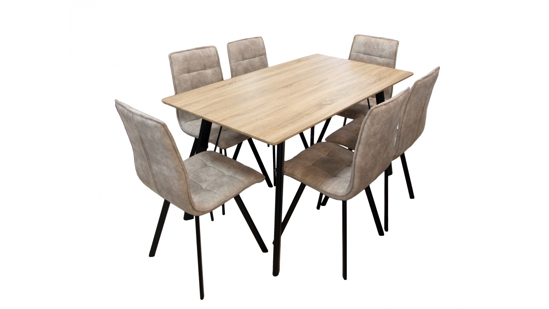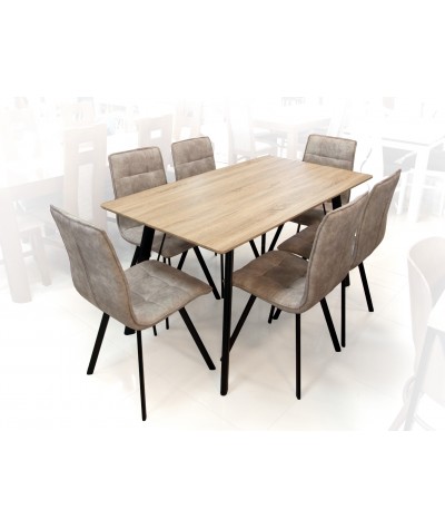 Połączenie ze sobą okleiny blatu Dąb Sonoma wraz z szaro białym materiałem obiciowym krzesła daje niesłychanie przyjemne odczucia wizualne. Designerska forma zarówno krzesła jak i stołu będzie z pewnością podkreśleniem niejednego wnętrza.