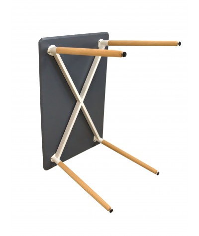 Nogi wykonane są z naturalnego twardego drewna bukowego. Połączone są elementami stalowymi malowanymi proszkowo.